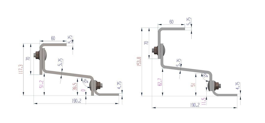 Der Hakenwinkel beträgt 97° und passt damit besser zu den meisten Ziegeldächern in Deutschland. Bei geringeren Winkeln (z. B. 95°) liegt der Haken oft vorne auf dem unteren Ziegel auf, was hier vermieden wird.